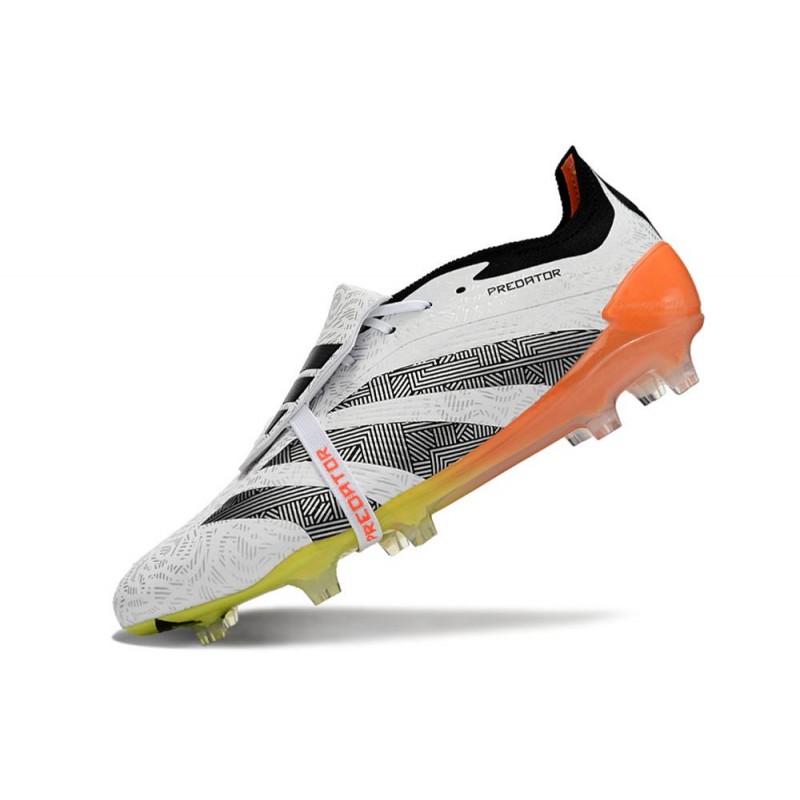 Den ikoniska vikta plousen är tillbaka, som med resår kan fästas på själva sulan.ADIDAS Predator Elite Tongue FG-knoppar för naturgrässtigar.